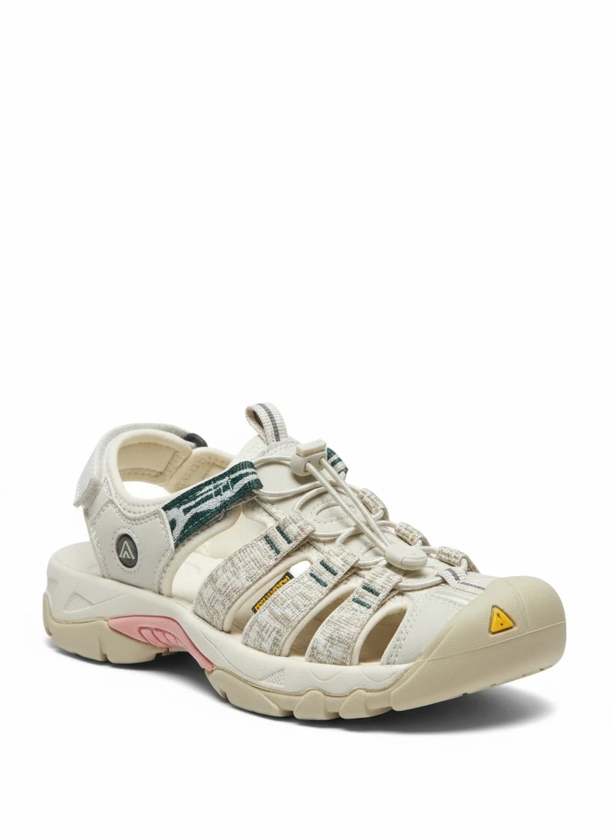 صندل اسپرت وارداتی زنانه هامتو HUMTTO مدل جلو بسته مخصوص پیادهروی و طبیعتگردی کرم بژ اورجینال