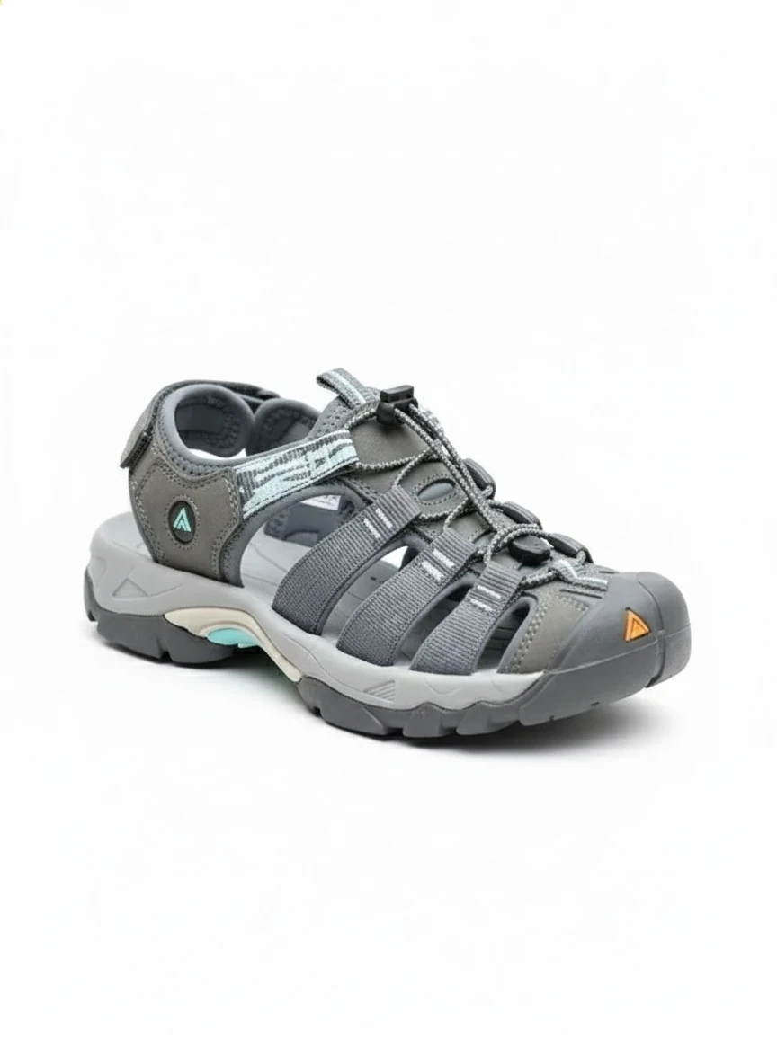 صندل وارداتی زنانه هامتو HUMTTO مدل جلو بسته مخصوص پیادهروی و طبیعتگردی رنگ طوسی فیروزه ای اورجینال