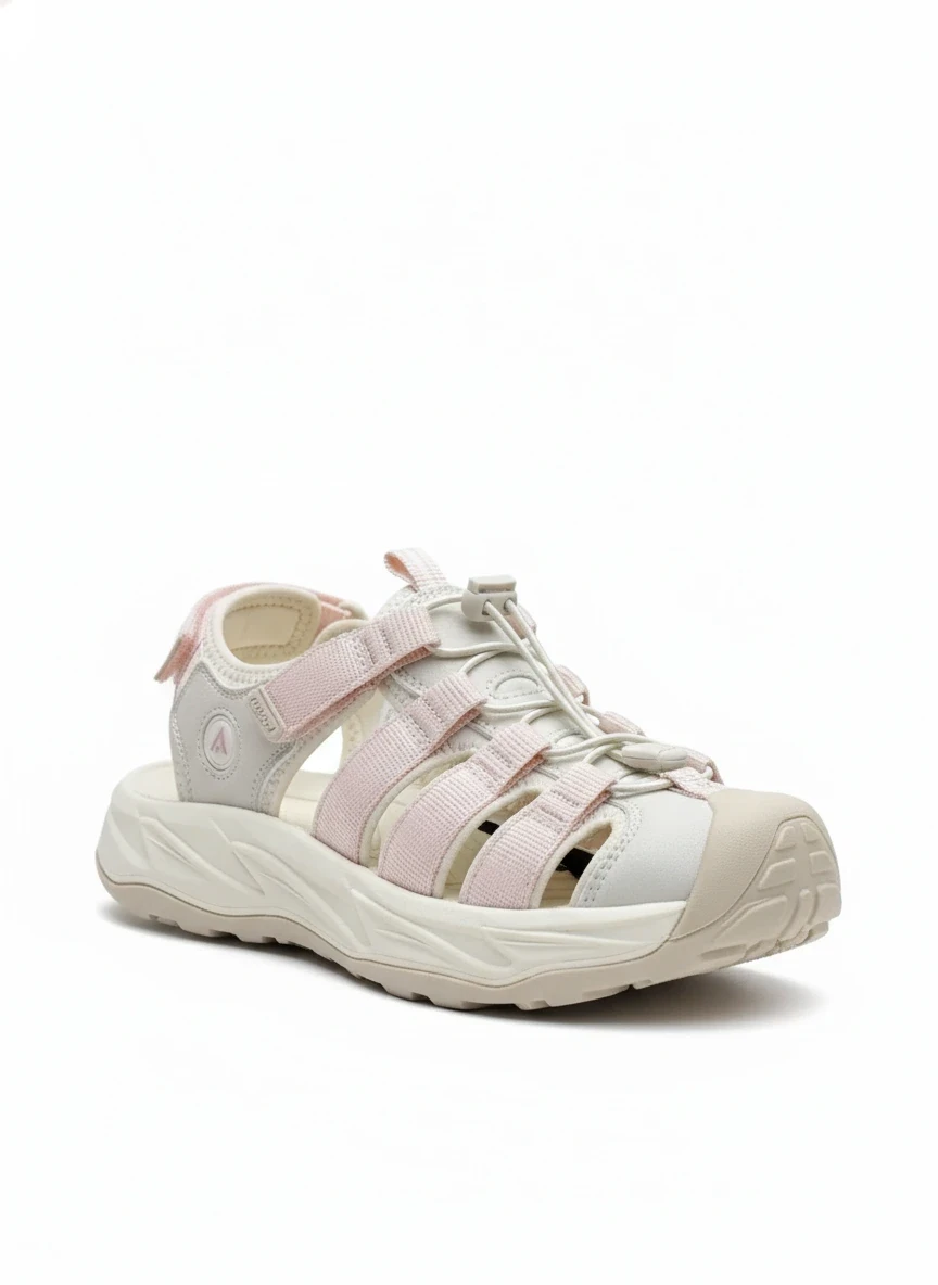صندل وارداتی زنانه هامتو HUMTTO مدل جلو بسته مخصوص پیادهروی و طبیعتگردی رنگ صورتی کرم اورجینال