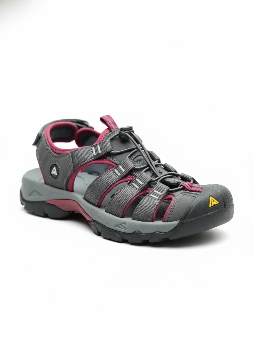 صندل اسپرت وارداتی زنانه هامتو HUMTTO مدل جلو بسته مخصوص پیادهروی و طبیعتگردی طوسی تیره اورجینال