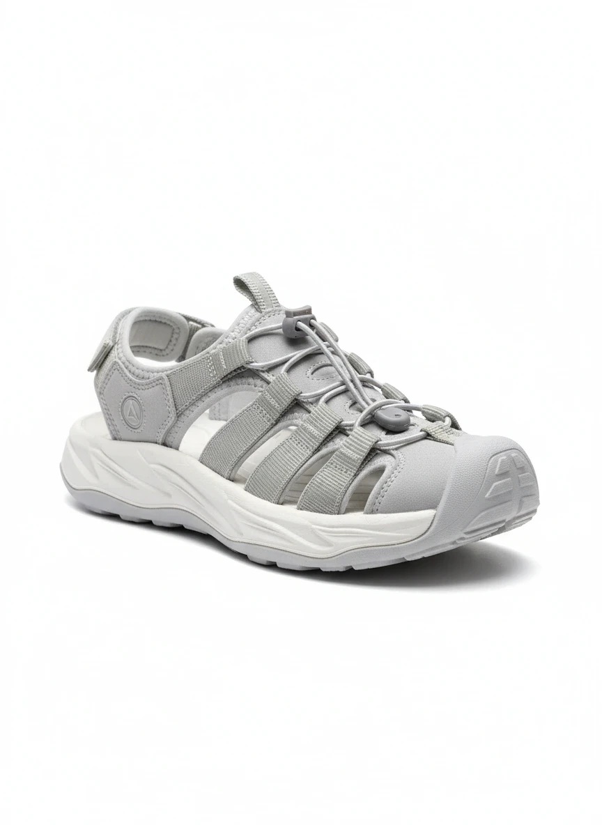 صندل اسپرت وارداتی زنانه هامتو HUMTTO مدل جلو بسته مخصوص پیادهروی و طبیعتگردی طوسی اورجینال