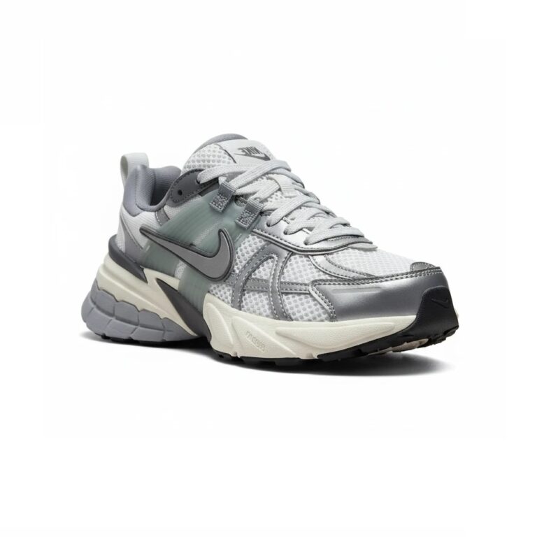 کفش وارداتی ورزشی و لایفاستایل نایکی مدل Nike V2K Run رنگ نقره ای/مشکی جزئیات کرم