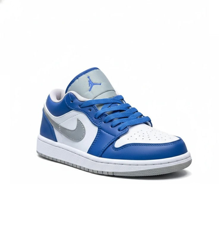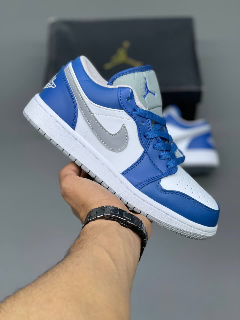 (ایر جردن 1 لو – ترکیب رنگ آبی، سفید و خاکستری)