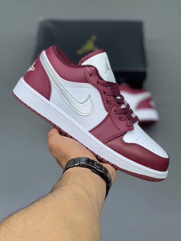 Nike Air Jordan 1 Low – زرشکی/سفید/طوسی یک انتخاب مطمئن برای افرادی است که بهدنبال ترکیب اصالت برند، طراحی ماندگار، راحتی روزمره و استایل شیک هستند.