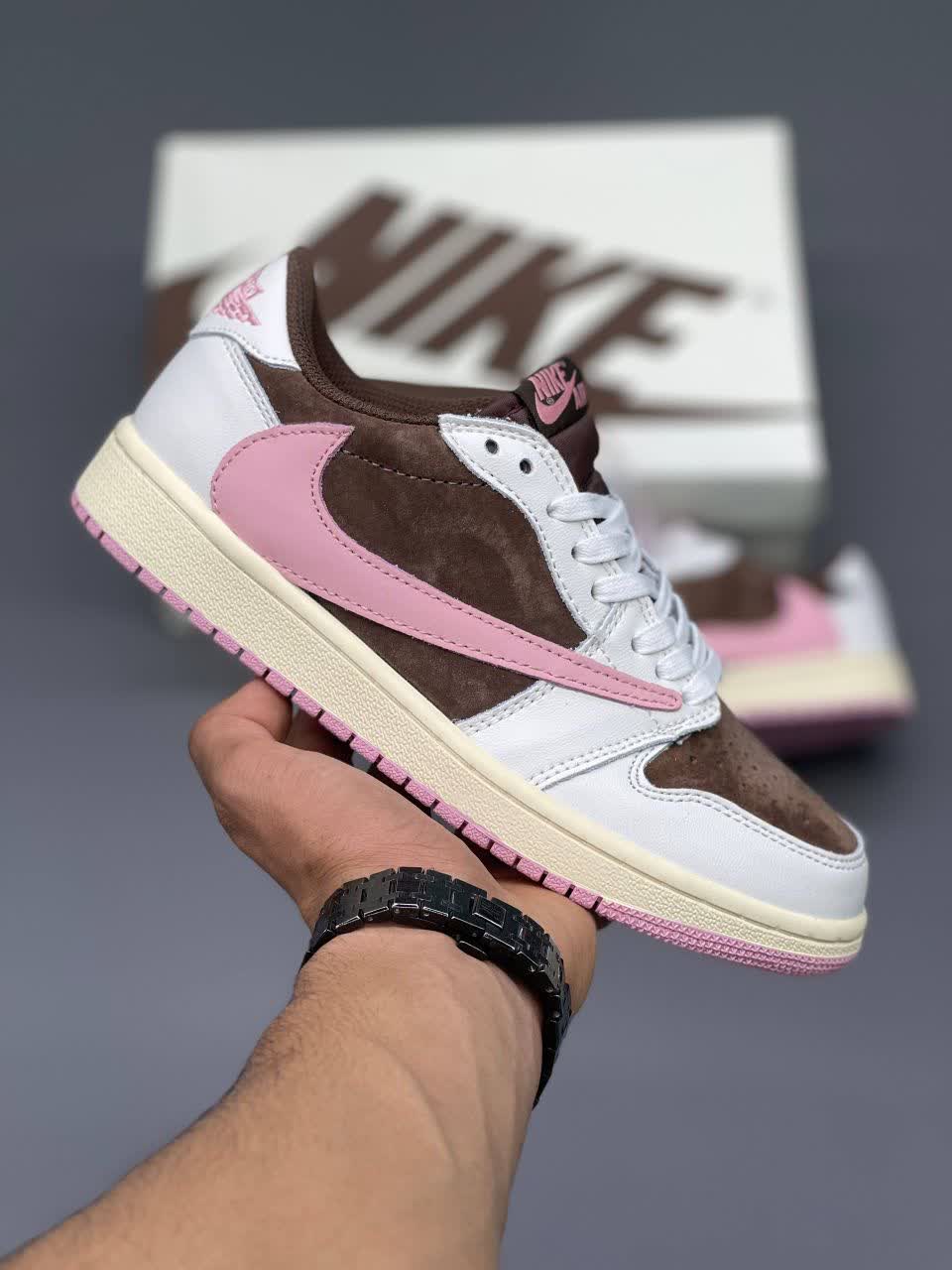 کفش وارداتی نایک Nike Low Top رنگ سفید/قهوه ای/صورتی