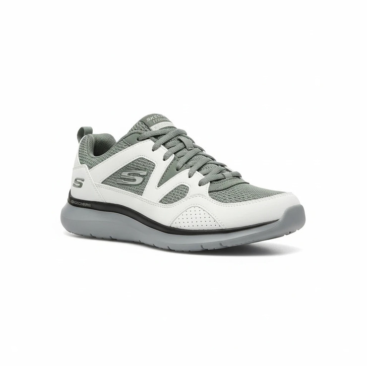 کفش وارداتی اسکیچرز کوانتوم فلکس Skechers quantum-flex رنگ کرم/سبز زیره طوسی